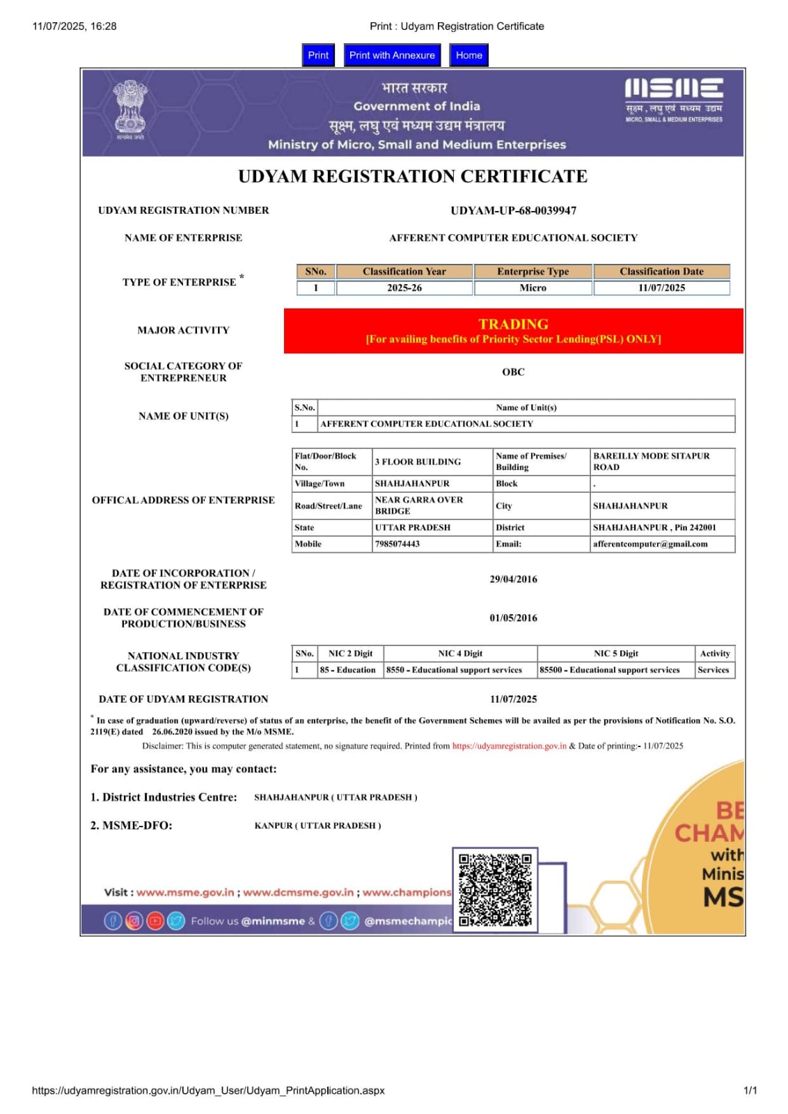 REGISTERED BY UP GOVERMENT